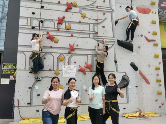 攀巖環節將活動推向高潮。在專業教練指導下,團員們穿戴護具,依次挑戰8米高的巖壁。面對陡峭的賽道,隊員們以“敢為人先”的勇氣迎難而上,指尖緊扣巖點,腳步穩扎穩打,用汗水詮釋“奮斗是青春最亮麗的底色”。許多人從最初的緊張到逐漸突破自我,最終登頂時全場歡呼。“巖壁上的每一步都需要專注和勇氣,就像工作中攻克難關一樣,當代青年亦需在挑戰中突破自我”大家感慨道。