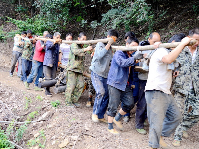 去年10月底接到任務后,隊工程公司立即組織精干力量,全力做好開鉆前的各項準備工作。經理沈星馬不停蹄趕赴有關生產單位進行設備考察、采購,確保了所需施工設備按時進場。副經理徐傳峰坐鎮工地指揮,緊鑼密鼓地完成了道路、機臺的修筑以及電路、供水系統的布設等工作。由于鉆孔處于善車峪的山溝內,路況差,又是軍事禁區,運送機械設備的大車進不去,必須在山外拆卸后用小貨車送到溝內,再用人工搬運上山。工程公司606機臺全體員工加班加點,肩扛手抬,及時把40余噸設備材料運到了機臺。