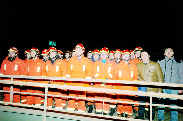 1月20日16時30分,省突發地質災害應急排查突擊總隊接到省環保廳環境污染應急救援指令。經請示集團公司黨委書記、董事長、突擊總隊領導小組組長趙廷周同意,即時啟動應急響應。17時10分,集團公司副總經理、突擊總隊指揮長馬貴鎖率突擊總隊辦公室、渭南支隊、商洛支隊30名突擊隊員,攜帶相關應急救援物資和設備,分乘8輛應急救援車,從西安、渭南、臨潼3地迅速向渭南市合陽縣洽川鎮集結。