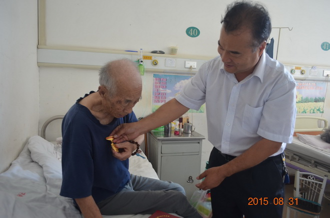 在紀念中國人民抗日戰爭暨世界反法西斯戰爭勝利70周年之際,8月31日下午,我隊黨委書記王戰社與離退休管理部門看望慰問了抗戰老兵阮恩紀,送去黨和政府的關懷。