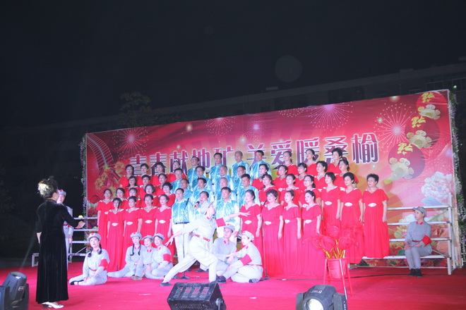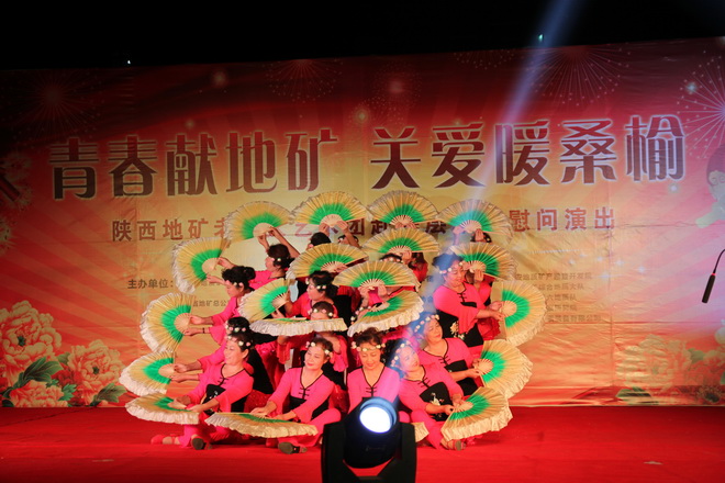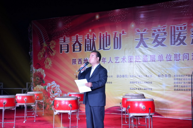 2015年10月19日下午十九點三十分由陜西省地質礦產開發總公司、陜西地礦總公司老年人文體協會主辦的“青春獻地礦 關愛暖桑榆”重陽節下基層慰問演出在我隊舉行。總公司副總經理艾亞雄、副總工程師王根寶及總公司有關部門負責人、部分兄弟單位的領導、我隊領導班子成員一同觀看了演出。隊黨委書記王戰社發表了熱情洋溢的致辭。