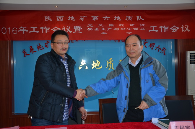 本次會(huì)議上,隊(duì)長(zhǎng)王根寶代表隊(duì)與5個(gè)經(jīng)營(yíng)實(shí)體分別簽訂了2016年經(jīng)營(yíng)目標(biāo)責(zé)任書(shū),隊(duì)黨委書(shū)記王戰(zhàn)社代表隊(duì)與各部門、經(jīng)營(yíng)實(shí)體分別簽訂了2016年安全生產(chǎn)與治安保衛(wèi)責(zé)任書(shū)。會(huì)議同時(shí)分別對(duì)2015年在創(chuàng)先爭(zhēng)優(yōu)活動(dòng)涌現(xiàn)出的先進(jìn)單位、先進(jìn)班子先進(jìn)職工、優(yōu)秀干部、突出貢獻(xiàn)者,對(duì)在“安康杯”競(jìng)賽中涌現(xiàn)出的先進(jìn)單位、先進(jìn)班組、坑口、先進(jìn)個(gè)人及在工會(huì)工作中涌現(xiàn)出的先進(jìn)分會(huì)、先進(jìn)分會(huì)小組、工會(huì)積極分子、優(yōu)秀會(huì)員進(jìn)行了表彰。