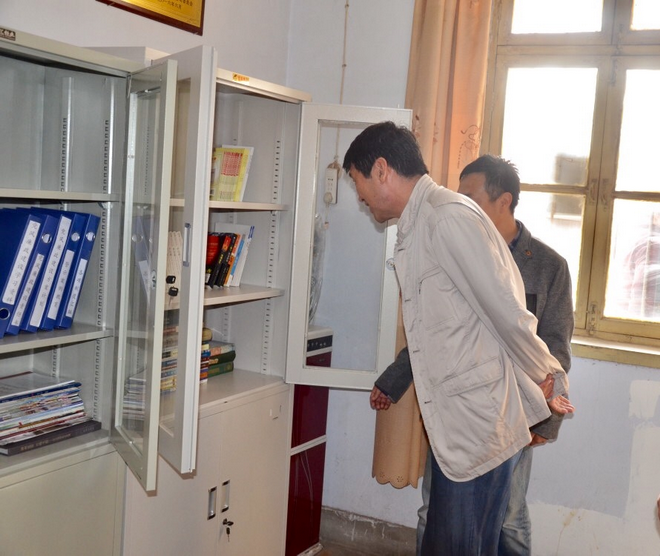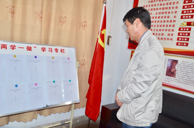 趙廷周查看黨支部“兩學一做”學習資料