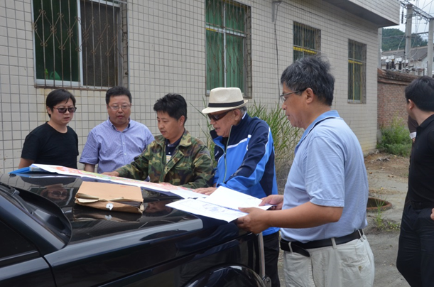 下午二點(diǎn)左右,老部長(zhǎng)一行在劉曉東隊(duì)長(zhǎng)和總工白和的陪同下到達(dá)洛南縣石門鎮(zhèn)項(xiàng)目部駐地,雖然年近八旬,但精神矍鑠,神采奕奕,不顧鞍馬勞頓,即讓技術(shù)人員將圖紙攤在了汽車引擎蓋上,聽取了隊(duì)長(zhǎng)劉曉東、總工白和對(duì)商洛地區(qū)紫瑪瑙玉石礦賦存情況及全省寶玉石礦調(diào)查工作進(jìn)展的匯報(bào)。