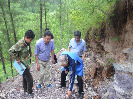 老部長(zhǎng)一邊聽,一邊記,詳細(xì)詢問商洛地區(qū)瑪瑙石礦的成因、品質(zhì)、產(chǎn)狀、規(guī)模、位置等情況,并不時(shí)地與技術(shù)人員交換意見,隨后又上山實(shí)地察看了水岔溝、張華溝礦點(diǎn)瑪瑙石礦的產(chǎn)出露頭情況。