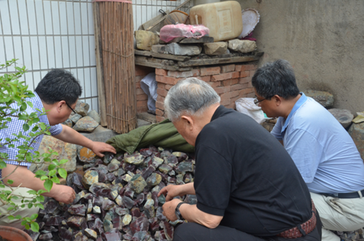 在院子,老部長(zhǎng)躬下身子,仔細(xì)察看王新海開采的瑪瑙礦石。看到老王用水潑澆礦石時(shí),老部長(zhǎng)風(fēng)趣的夸獎(jiǎng)到,你蠻有經(jīng)驗(yàn)啊,是行家嘛!