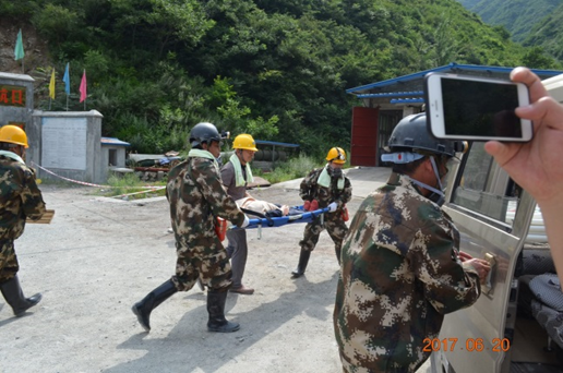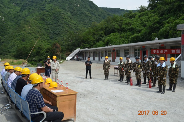 6月20日,盛夏酷暑,我隊(duì)在興地公司850坑口組織開(kāi)展了礦山消防安全應(yīng)急演練。隊(duì)長(zhǎng)劉曉東、隊(duì)黨委書記王戰(zhàn)社親臨指導(dǎo)。潼關(guān)縣安監(jiān)局局長(zhǎng)朱曉軍等局領(lǐng)導(dǎo)及有關(guān)安全生產(chǎn)專家現(xiàn)場(chǎng)觀摩了演練。潼關(guān)縣電視臺(tái)對(duì)演練進(jìn)行了實(shí)況采訪。