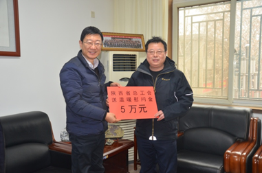 春節(jié)將至,暖意濃濃。各級領(lǐng)導心系困難職工。1月24日下午,陜西省總工會黨組成員、副主席張永樂一行5人,深入我公司開展送溫暖活動。集團公司黨委委員、副總經(jīng)理、工會主席白林科,工會常務(wù)副主席張漢軍等陪同慰問。張永樂詳細了解了公司生產(chǎn)經(jīng)營情況與發(fā)展中面臨的困難與問題,以及“春節(jié)”前我公司幫扶服務(wù)工作的開展情況。張永樂副主席充分肯定了我公司的各項工作,代表省總向公司廣大職工致以新春的問候!努力把以習近平同志為核心的黨中央對廣大職工群眾的關(guān)心關(guān)懷送到職工群眾的心坎上。座談會后,張永樂一行先后到因病致困職工王玉霞和西安市勞動模范董紅毅家中進行了走訪,仔細了解了他們的生活情況,并送上慰問金和慰問品。