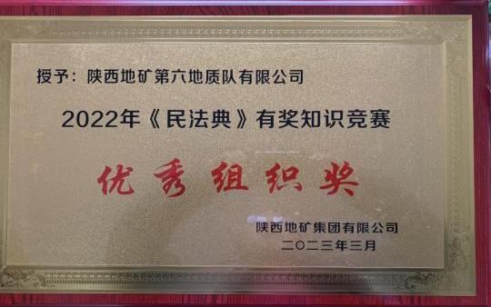 近日,在集團(tuán)公司組織的《民法典》知識(shí)競(jìng)賽活動(dòng)中,我公司榮獲優(yōu)秀組織獎(jiǎng),獲這一殊榮的還有5家兄弟單位。我公司員工周青、劉曉龍、王敏鵬三名同志榮獲優(yōu)秀獎(jiǎng)。